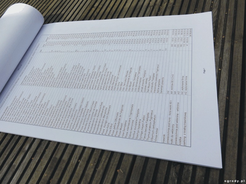 projekt w wersji drukowanej - powiększenia fragmentów projektu z opisami roślin