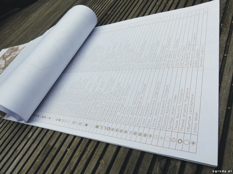 projekt w wersji drukowanej - zestawienie roślin z symbolami